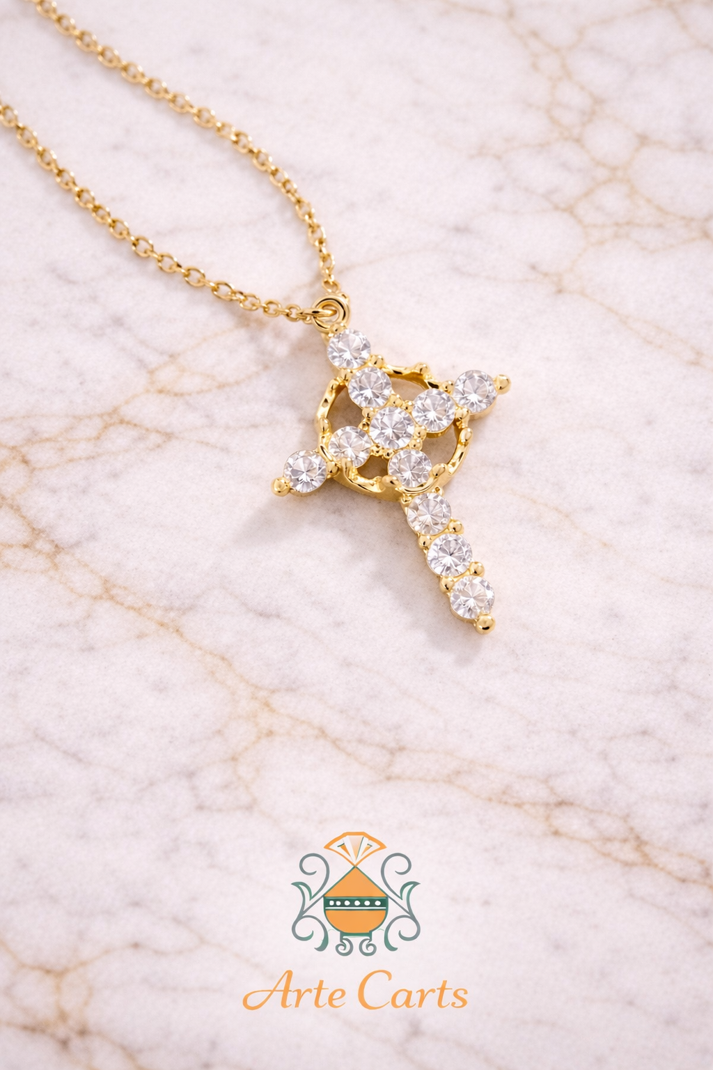 Set on a fine gold-tone chain, the cross pendant reflects light beautifully, creating a subtle yet eye-catching statement piece that can be worn daily or on special occasions.