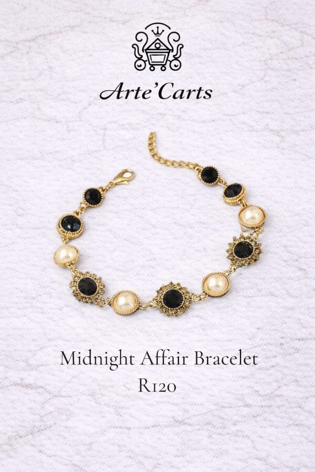 The Midnight Affair Bracelet is designed for evenings that linger. Featuring alternating black stones and pearl-inspired accents set in detailed gold-tone frames, this piece carries a vintage-inspired charm with modern wearability.